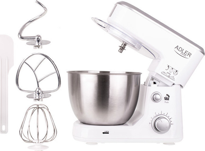 Η κουζινομηχανή, από την εταιρία Adler, διαθέτει ισχύ 1000W, που σας επιτρέπει να χτυπάτε, να ανακατεύετε και να ζυμώνετε τα πάντα, για ζαχαροπλαστικές και μαγειρικές δημιουργίες.