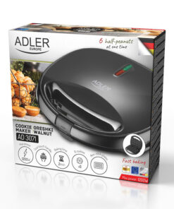 Με τη συσκευή, από την εταιρία Adler, μπορείτε να φτιάξετε νόστιμα και σπιτικά cookies, γρήγορα και εύκολα. Η συσκευή, μπορεί να ψήσει μέχρι και 12 μισά cookies σε μορφή καρυδιών τη φορά. Το ψήσιμο θα διαρκέσει έως 2 λεπτά, λόγω της υψηλής ισχύος των 1200 W. Οι πλάκες καλύπτονται με αντικολλητική επίστρωση, εξασφαλίζοντας εύκολη αφαίρεση των cookies και απλότητα στον καθαρισμό της συσκευής μετά τη χρήση.