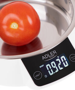 Ηλεκτρονική ζυγαριά κουζίνας με μέγιστο φορτίο 5 kg και ακρίβεια 1 g. Εξαιρετικά βοηθητικό στην παρασκευή πιάτων που απαιτούν αυστηρά καθορισμένες αναλογίες προϊόντων. Επιτρέπει το ακριβές ζύγισμα ακόμη και μικρών ποσοτήτων προϊόντων. Καλύπτει επίσης τις ανάγκες των ανθρώπων που ενδιαφέρονται για το μέγεθος των γευμάτων για λόγους υγείας. Χάρη στο μικρό της μέγεθος, η ζυγαριά είναι βολική στην αποθήκευση και επιτρέπει την αποτελεσματική μεταφορά. Έχει την επιλογή αυτόματου ή χειροκίνητου τερματισμού λειτουργίας και μια μεγάλη, ευανάγνωστη οθόνη. Το αισθητικό μπολ από ανοξείδωτο χάλυβα διατηρείται εύκολα καθαρό. Επιπλέον, η ζυγαριά έχει τη δυνατότητα υπολογισμού του όγκου του νερού και του γάλακτος, κάτι που είναι χρήσιμο όταν λείπει το κύπελλο μέτρησης.