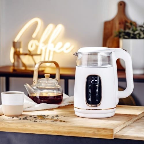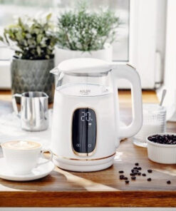 Ο κομψός βραστήρας σε ασημί και μαύρο χρώμα συνδυάζει αισθητική και λειτουργικότητα, προσφέροντάς σου γρήγορα και εύκολα ζεστό νερό για κάθε χρήση. Με ρυθμιζόμενο θερμοστάτη από 40 έως 100 °C, προσαρμόζεται τέλεια σε κάθε ρόφημα ή συνταγή. Η οθόνη LED και ο χειρισμός αφής κάνουν τη χρήση του ιδιαίτερα φιλική, ενώ η περιστρεφόμενη βάση 360° προσφέρει ελευθερία κινήσεων, ανεξαρτήτως προσανατολισμού.
