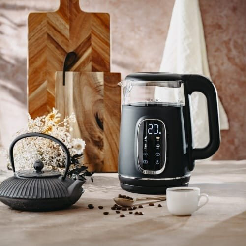 Ο κομψός βραστήρας σε ασημί και μαύρο χρώμα συνδυάζει αισθητική και λειτουργικότητα, προσφέροντάς σου γρήγορα και εύκολα ζεστό νερό για κάθε χρήση. Με ρυθμιζόμενο θερμοστάτη από 40 έως 100 °C, προσαρμόζεται τέλεια σε κάθε ρόφημα ή συνταγή. Η οθόνη LED και ο χειρισμός αφής κάνουν τη χρήση του ιδιαίτερα φιλική, ενώ η περιστρεφόμενη βάση 360° προσφέρει ελευθερία κινήσεων, ανεξαρτήτως προσανατολισμού.