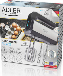 Το μίξερ χειρός από την εταιρία Adler σας επιτρέπει να δημιουργήσετε μια ποικιλία συνταγών χάρη στον ισχυρό κινητήρα 800 W, ο οποίος είναι ιδανικός τόσο για ελαφριές όσο και για πυκνές συνθέσεις. Διαθέτει 5 επίπεδα ταχύτητας καθώς και λειτουργία Turbo, για να παρέχει τέλεια αποτελέσματα, ανεξάρτητα από τη συνταγή.