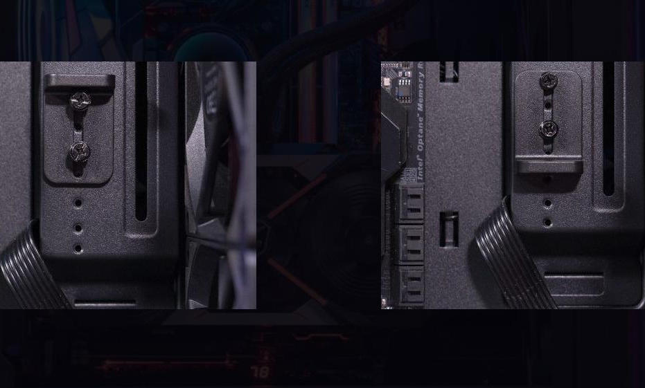 Ο βραχίονας υποστήριξης GPU συγκρατεί κάρτες γραφικών με μήκος 282 mm ή μεγαλύτερο όταν είναι τοποθετημένες οριζόντια, παρέχοντας πρόσθετη σταθερότητα και υποστήριξη για μεγαλύτερες κάρτες γραφικών.