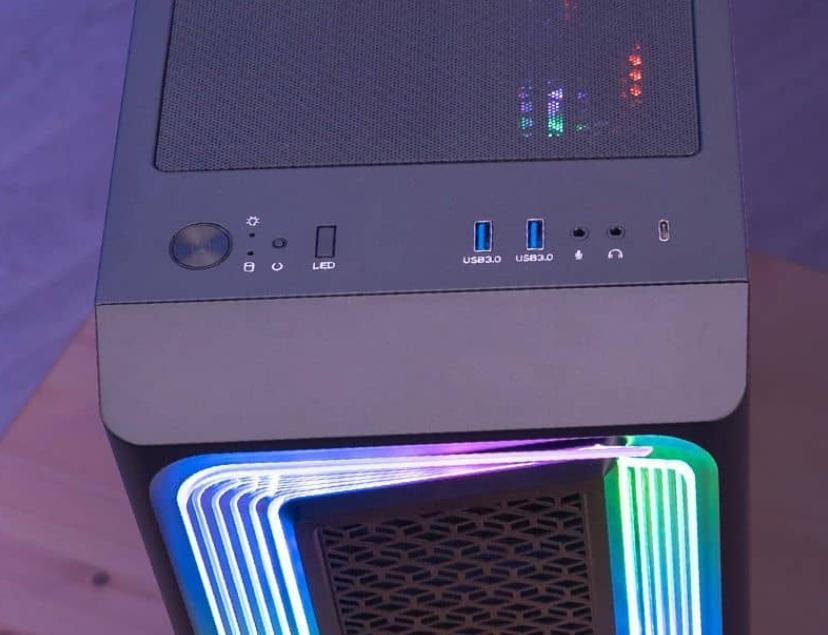 Γρήγορη και εύκολη πρόσβαση στο κουμπί ελέγχου LED, USB-C x 1, USB3.0 x 2, θύρες ήχου και μικροφώνου HD και κουμπί λειτουργίας και επαναφοράς.