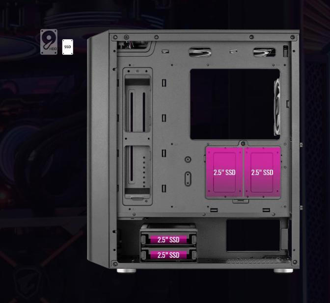 - Υποστηρίζει έως και 4 x 2,5” SSD (2 x 2,5” και 2 x 2,5”/3,5”).
