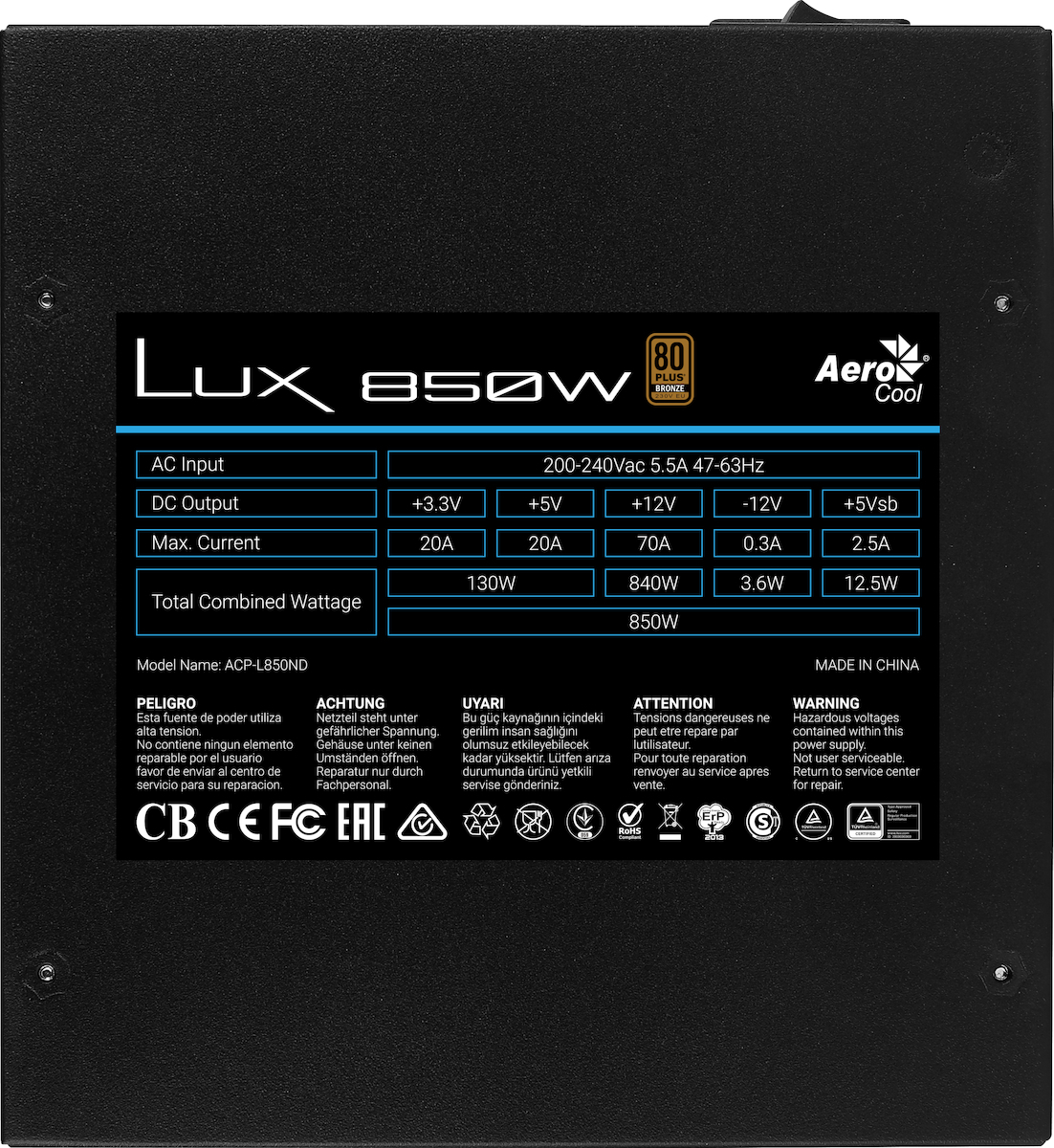 - Πιστοποίηση 80 PLUS: 80 PLUS Bronze