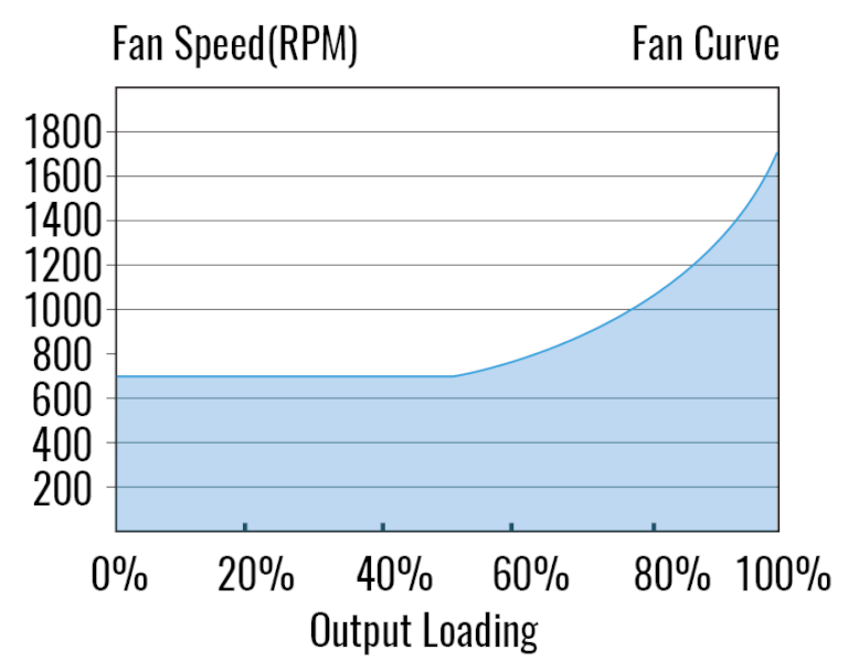 Αθόρυβος ανεμιστήρας 12 cm με βελτιστοποιημένο έξυπνο έλεγχο ταχύτητας. Ο ανεμιστήρας λειτουργεί με ταχύτητα εκκίνησης πριν φτάσει στο 50% φορτίο σε θερμοκρασίες περιβάλλοντος 25℃.