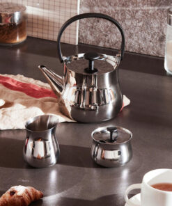 Η τσαγιέρα της εταιρείας Alessi είναι κατασκευασμένη από ανοξείδωτο ατσάλι, ένα υλικό ιδιαίτερα ανθεκτικό σε υψηλές θερμοκρασίες, το οποίο θερμαίνεται πολύ γρήγορα και μπορεί να διατηρήσει τη θερμοκρασία για περισσότερη ώρα σε αντίθεση με άλλες μεταλλικές τσαγιέρες.