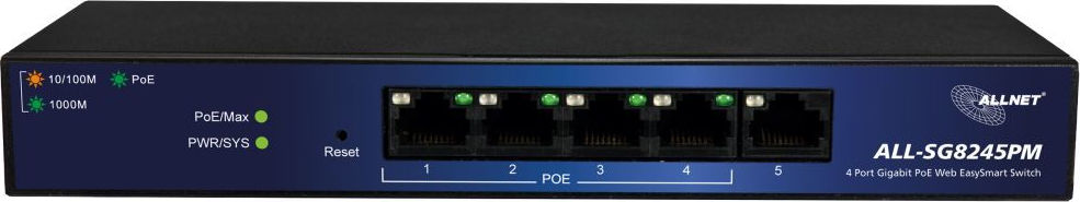 Ο managed L2 PoE+ switch Allnet ALL-SG8245PM είναι ιδανικός για να καλύψει τις ανάγκες δικτύωσης σας με αξιοπιστία και ταχύτητα. Με πέντε θύρες Gigabit Ethernet, προσφέρει ταχύτητα 1000 Mbps, εξασφαλίζοντας γρήγορες και σταθερές συνδέσεις για τις συσκευές σας.