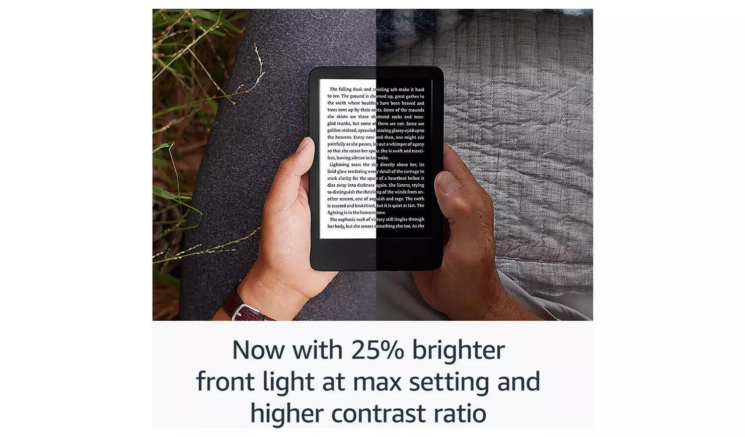 Η οθόνη του Kindle υποστηρίζει 16 επίπεδα γκρι, βελτιώνοντας την αναγνωσιμότητα με καλύτερη αντίθεση. Ο μπροστινός φωτισμός είναι 25% πιο φωτεινός από προηγούμενα μοντέλα, επιτρέποντας άνετη ανάγνωση ακόμη και σε χαμηλό φωτισμό.