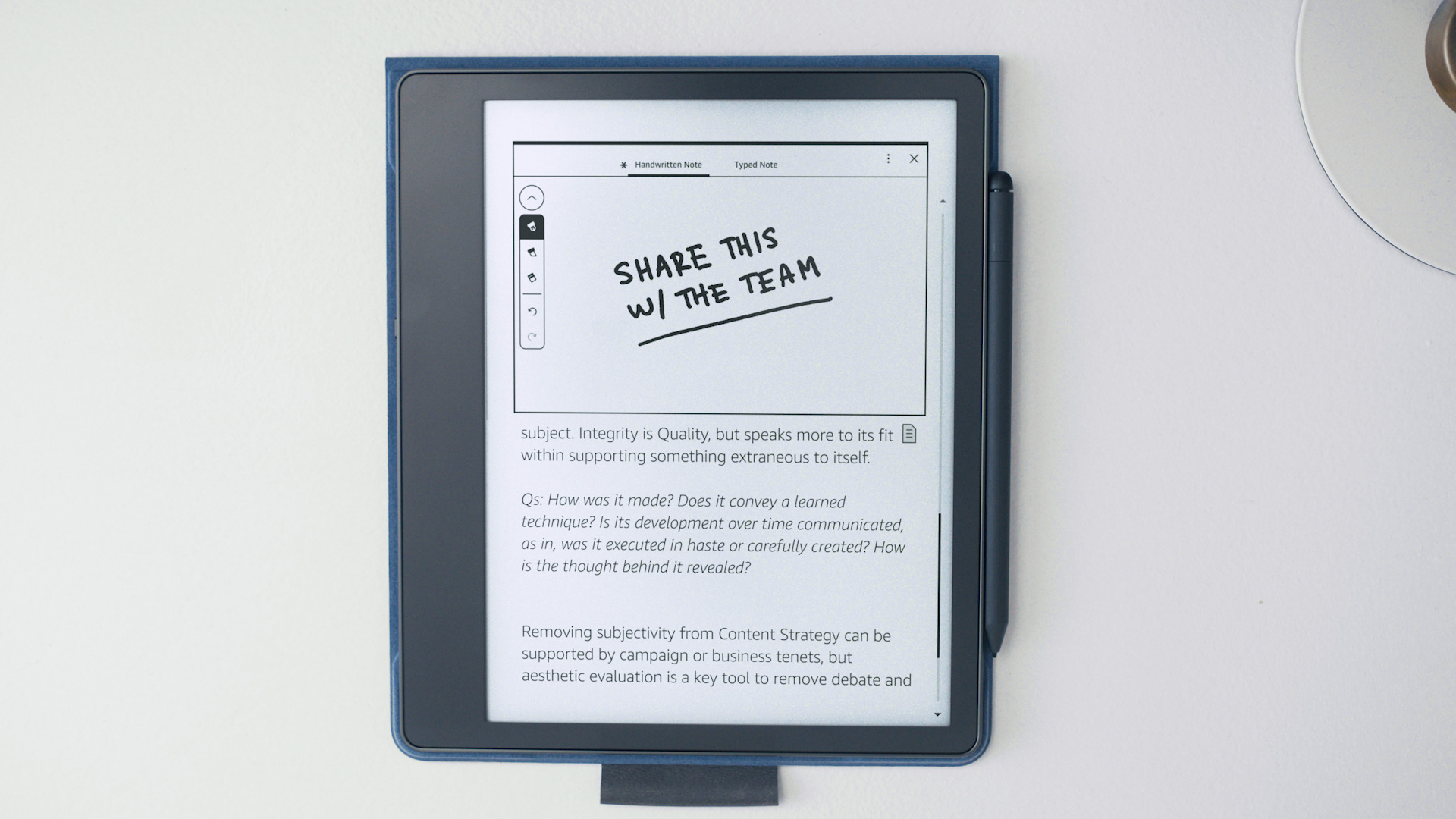 Δοκιμάστε την πένα για όμορφη καλλιγραφία, ένα μαρκαδόρο ή ένα μαρκαδόρο για να τονίσετε τις σημειώσεις σας, ή χρησιμοποιήστε το μολύβι για ελαφρύ σκίτσο. Όλα τα εργαλεία γραφής διαθέτουν βελτιωμένες δυνατότητες πίεσης και κλίσης.