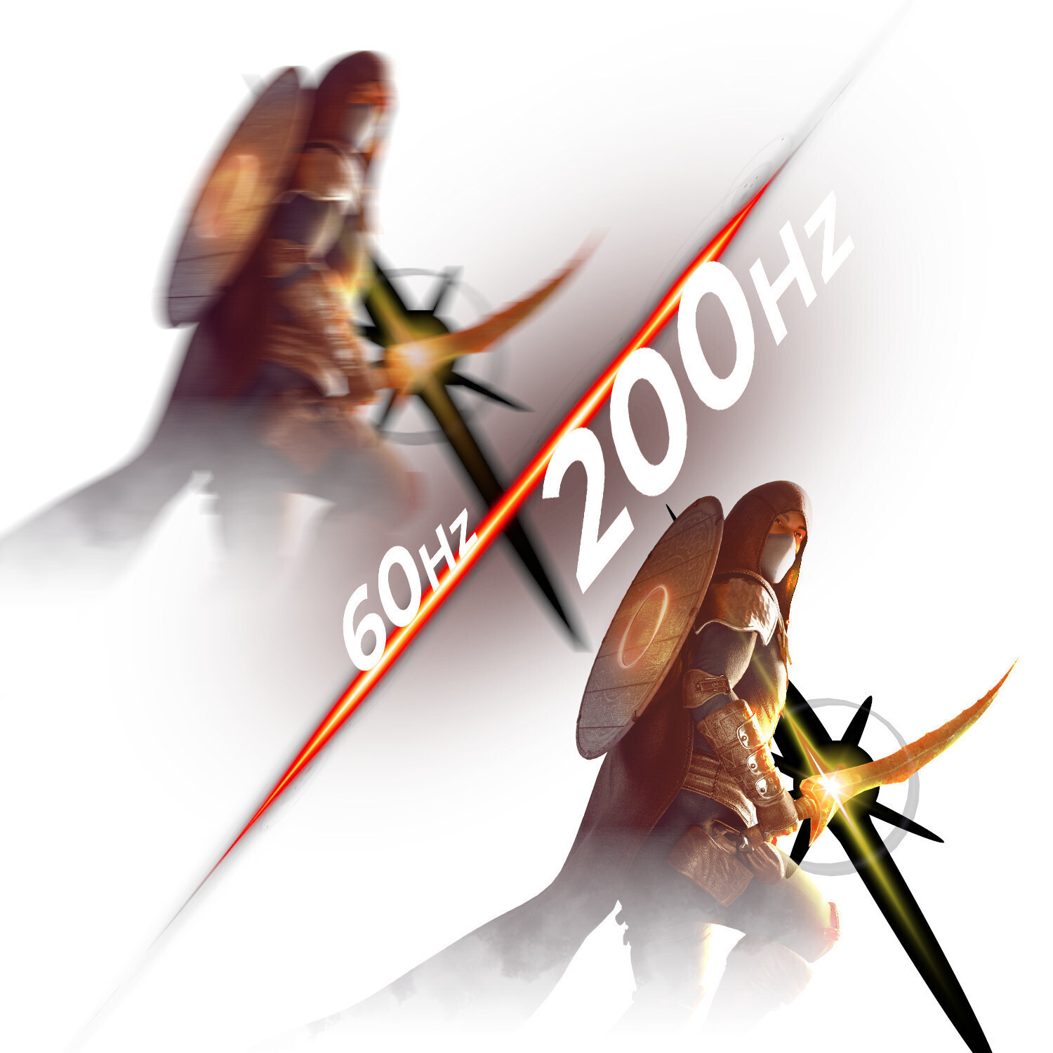 Ο ρυθμός ανανέωσης 200Hz είναι υπερτριπλάσιος από το βιομηχανικό πρότυπο των 60Hz. Απελευθερώστε το πλήρες δυναμικό της κάρτας γραφικών σας: με το screen tearing, το θόλωμα της κίνησης και το stuttering να έχουν εξαλειφθεί, το παιχνίδι σας θα κυλήσει επιτέλους όπως έπρεπε και οι ικανότητές σας θα φτάσουν σε νέα ύψη.