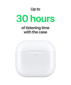 Έχεις έως και 5 ώρες ακρόασης με μία μόνο φόρτιση. Και έως και 30 ώρες συνολικού χρόνου ακρόασης με τη χρήση της θήκης,η οποία διαθέτει δυνατότητα φόρτισης USB-C και είναι πάνω από 10% μικρότερη σε όγκο από την προηγούμενη γενιά.