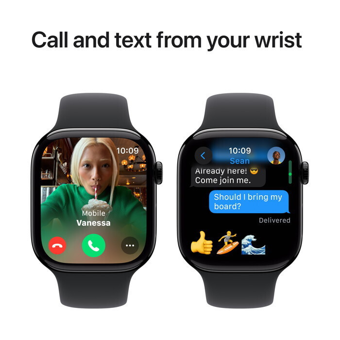 Μείνε σε επαφή – Στείλε ένα μήνυμα κειμένου, απάντησε σε μια κλήση, άκου μουσική και podcasts και λάβε γνωστοποιήσεις εν κινήσει. Το Apple Watch Series 10 (GPS) συνδέεται με το iPhone σου ή το Wi-Fi για να παραμένεις σε σύνδεση.