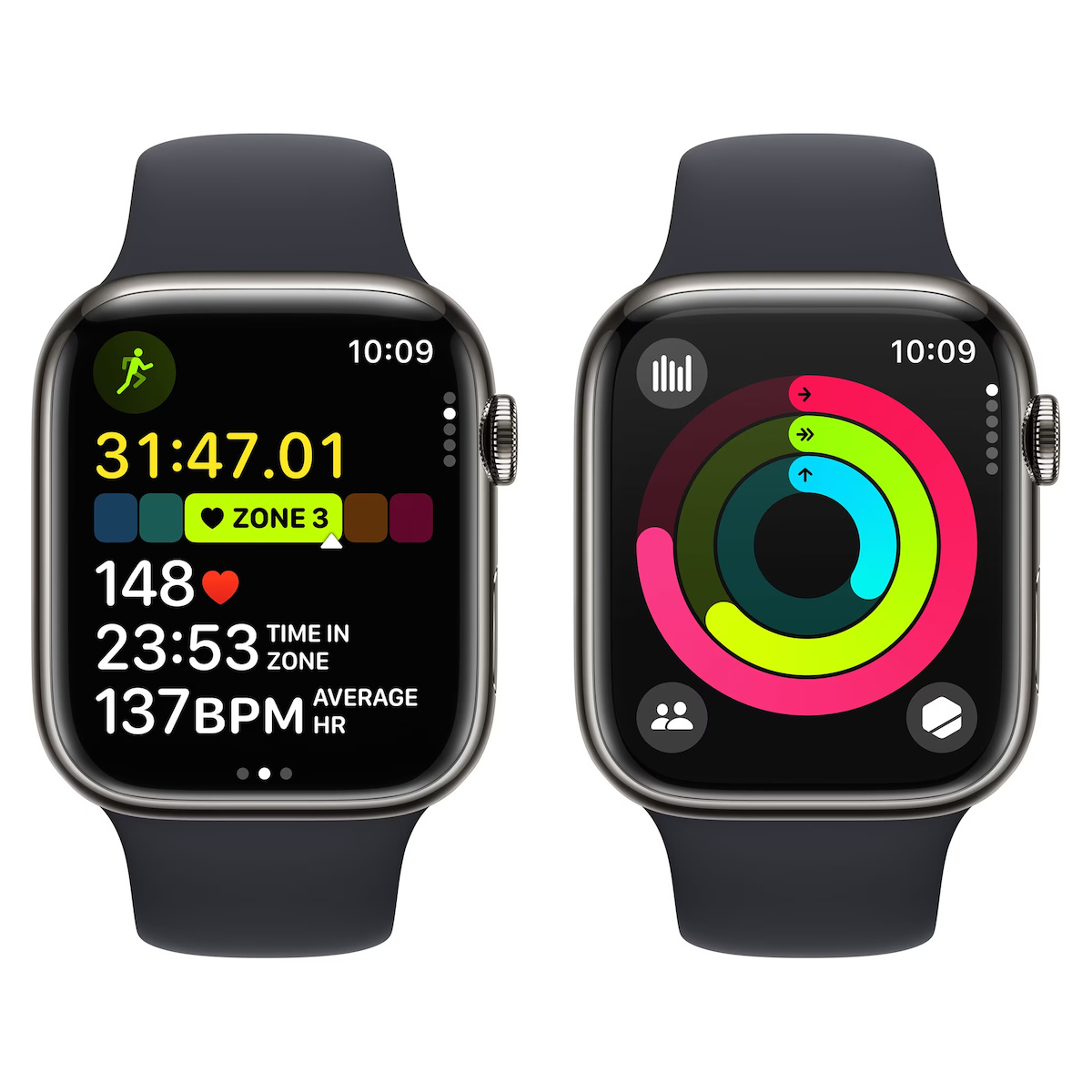 Το Apple Watch Series 9 τρέχει watchOS 10, το οποίο προσφέρει επανασχεδιασμένες εφαρμογές, το νέο Smart Stack, νέες όψεις ρολογιού, νέες λειτουργίες ποδηλασίας και πεζοπορίας και εργαλεία για την υποστήριξη της ψυχικής υγείας.