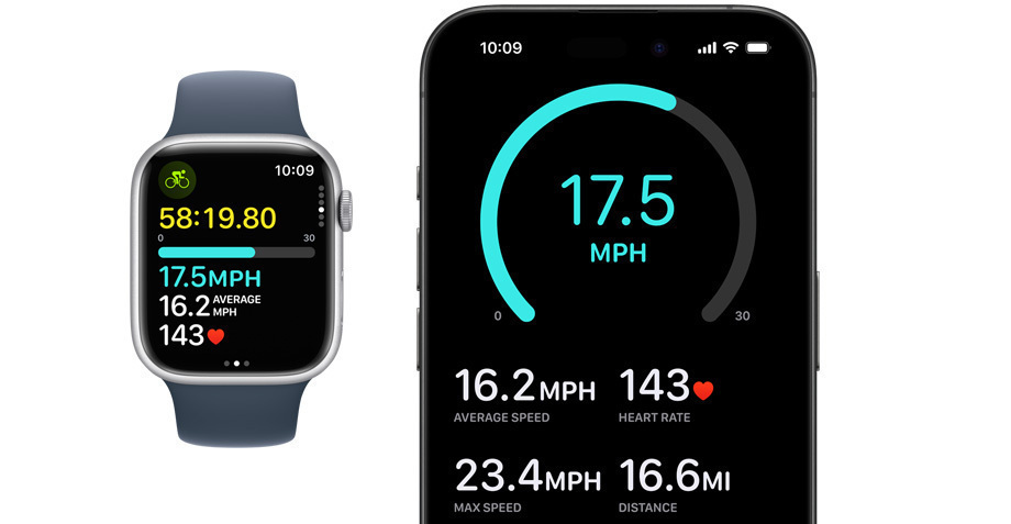 Ξεκινήστε μια προπόνηση ποδηλασίας από το ρολόι σας και θα εμφανιστεί αυτόματα ως Ζωντανή Δραστηριότητα στο iPhone σας. Πατήστε την και θα καταλάβει ολόκληρη την οθόνη, διευκολύνοντας την προβολή των μετρήσεων σας κατά τη διάρκεια της βόλτας.