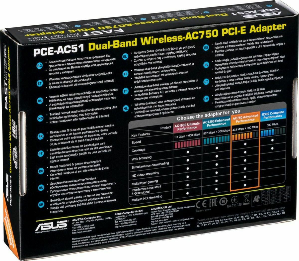 Η ASUS PCE-AC51 Wireless-AC PCI Express Adapter προσφέρει ανώτερη απόδοση Wi-Fi για εφαρμογές υποδομής διακομιστών και εναλλαγής, καθώς και για mainstream επιτραπέζιους υπολογιστές και φορητούς υπολογιστές. Χρησιμοποιώντας τη συμβατότητα ενός τυπικού συνδέσμου PCI Express, προσφέρει ευρεία συμβατότητα, κατάλληλη για οποιαδήποτε υποδοχή x1, x2, x8 ή x16. Σε σύγκριση με τις τυπικές PCI κάρτες δικτύου, προσφέρει αυξημένο εύρος ζώνης, αξιοπιστία και λειτουργικότητα, επιτρέποντάς σας να απολαμβάνετε ταχύτερες και πιο σταθερές συνδέσεις.