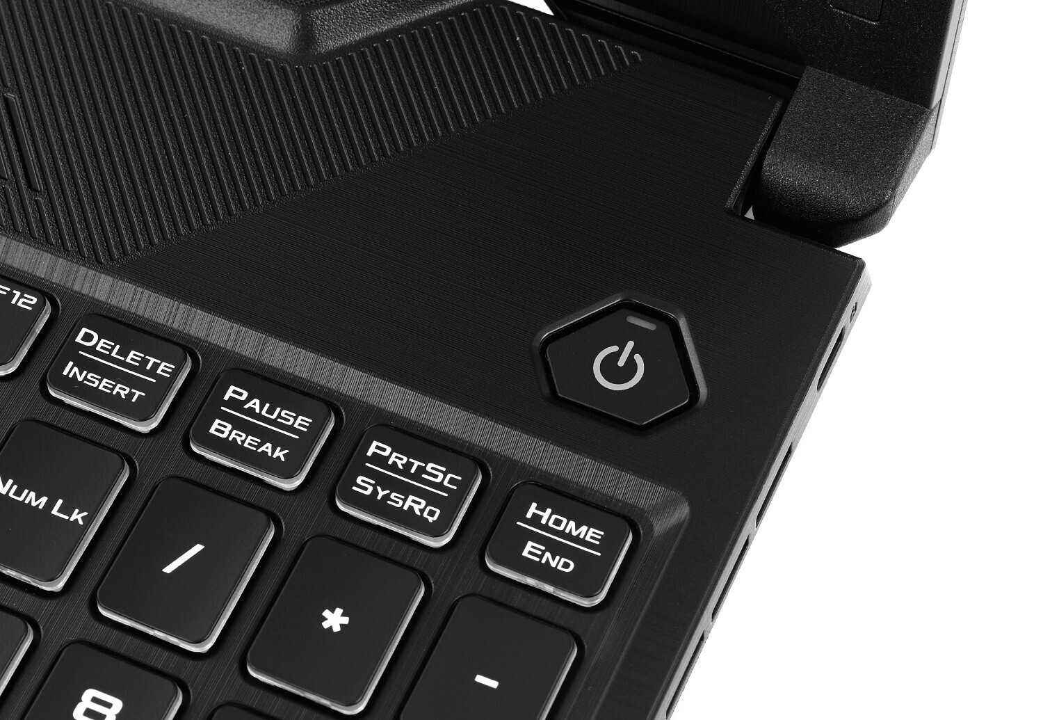Η κυψελοειδής υφή στη βάση προσφέρει καλύτερο κράτημα και παραπέμπει στις εξαγωνικές ενισχύσεις γύρω από το σασί. Λεπτές βουρτσιστές γραμμές τονίζουν την περιοχή της παλάμης, προσθέτοντας μια διακριτική υφή που δείχνει επαγγελματική και κομψή. Oι ακριβείς εγκοπές λειτουργούν ταυτόχρονα και ως αεραγωγοί ψύξης.
