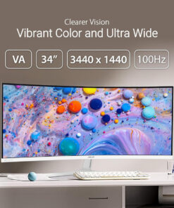 Αυτή η οθόνη προσφέρει μια εντυπωσιακή εμπειρία θέασης με την καμπυλωτή σχεδίαση που επιτρέπει πιο φυσική και άνετη παρακολούθηση. Με διαγώνιο 34 ιντσών και ανάλυση 3440×1440, προσφέρει εξαιρετική λεπτομέρεια και ζωντανά χρώματα.