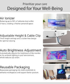 Περιλαμβάνει ενσωματωμένα ηχεία και δυνατότητα ρύθμισης ύψους, διευκολύνοντας την προσαρμογή της οθόνης στη θέση που σας ταιριάζει καλύτερα. Επιπλέον, διαθέτει λειτουργία Eye Comfort, η οποία μειώνει την καταπόνηση των ματιών κατά τη διάρκεια παρατεταμένης χρήσης.