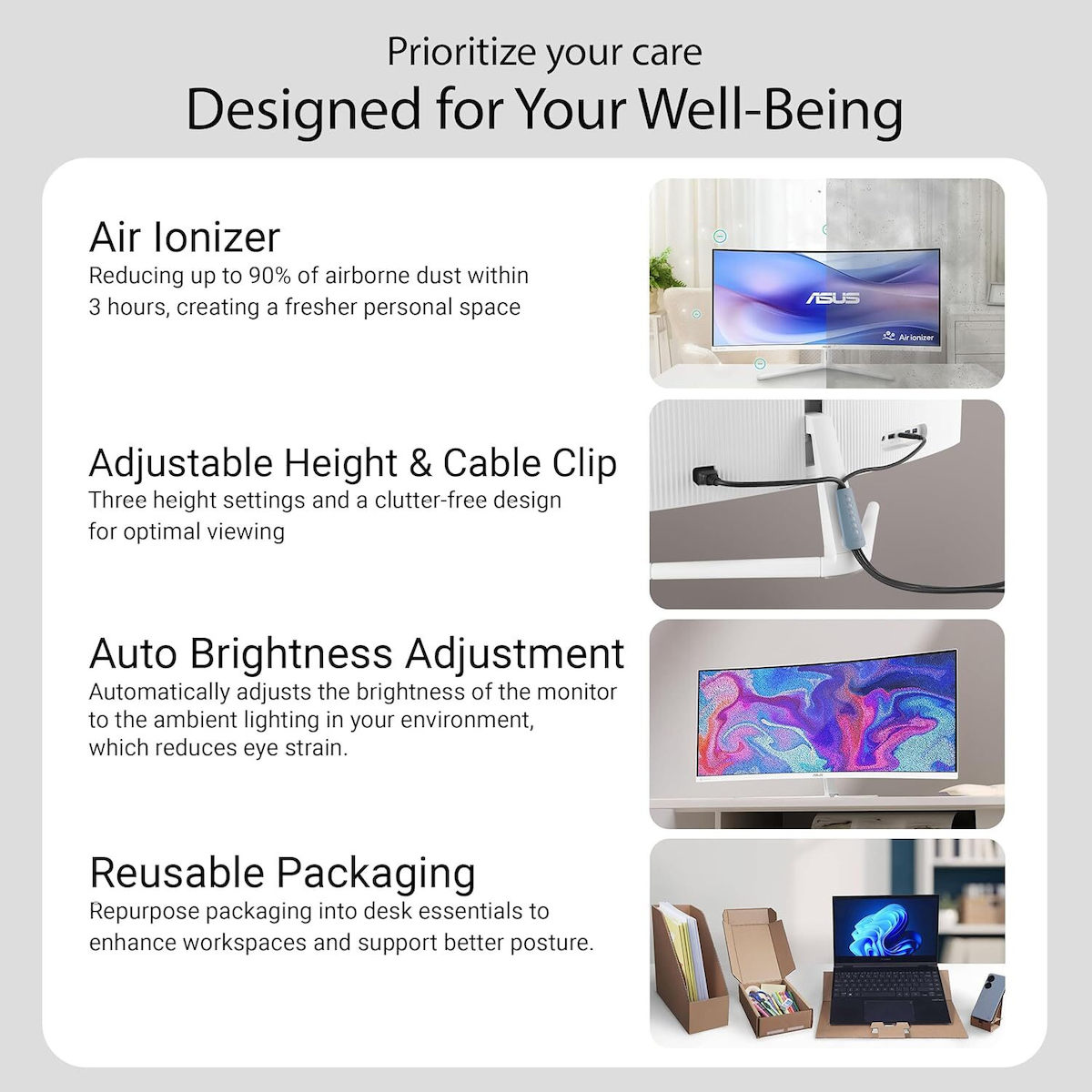 Η αναλογία εικόνας 21:9 καθιστά την οθόνη ιδανική για multitasking και gaming, επιτρέποντας ταυτόχρονη παρακολούθηση πολλών παραθύρων. Η τεχνολογία VA προσφέρει πλούσιες αντιθέσεις με αναλογία 3000:1, εξασφαλίζοντας βαθύ μαύρο και φωτεινά χρώματα.