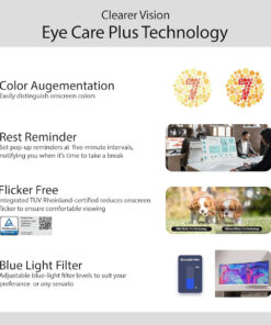 Με ρυθμό ανανέωσης 100Hz, χρησιμοποιεί την τεχνολογία HDR για να ενισχύσει τη φωτεινότητα και το χρώμα, προσδιορίζοντας διάφορες αποχρώσεις και λεπτομέρειες που συνήθως χάνονται σε άλλες οθόνες. Υποστηρίζει HDMI για εύκολη σύνδεση με άλλες συσκευές και διαθέτει USB Hub για άμεση σύνδεση περιφερειακών συσκευών.