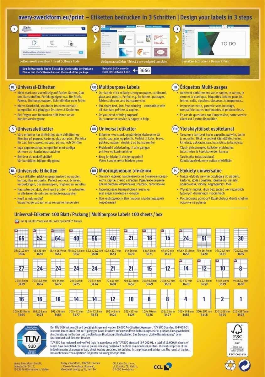 Avery Αυτοκόλλητες Ετικέτες Α4 Ορθογώνιες 3483 105x148mm