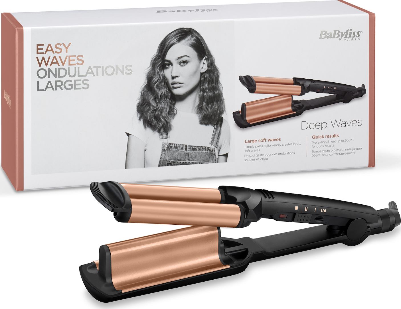 To ηλεκτρικό ψαλίδι Deep Waves W2447Ε είναι ένα επαγγελματικό εργαλείο για να δημιουργείτε κυματιστά μαλλιά με τον πιο εύκολο τρόπο. Απλώς κλείνετε τις μεγάλες κεραμικές πλάκες τουρμαλίνης επάνω σε μια τούφα μαλλιών, τόσο απλά.