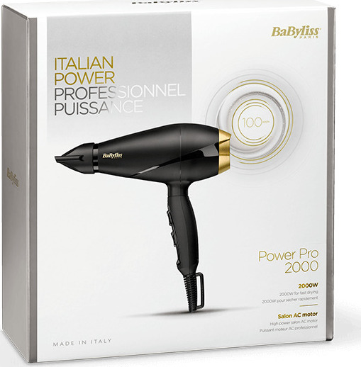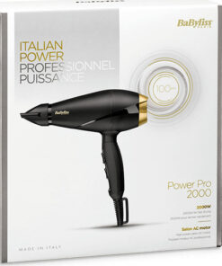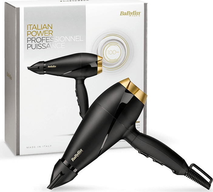 Επαγγελματικό πιστολάκι μαλλιών της Babyliss, που διαθέτει υψηλή ισχύ με δυνατή ροή αέρα για γρήγορο στέγνωμα και φορμάρισμα των μαλλιών.
