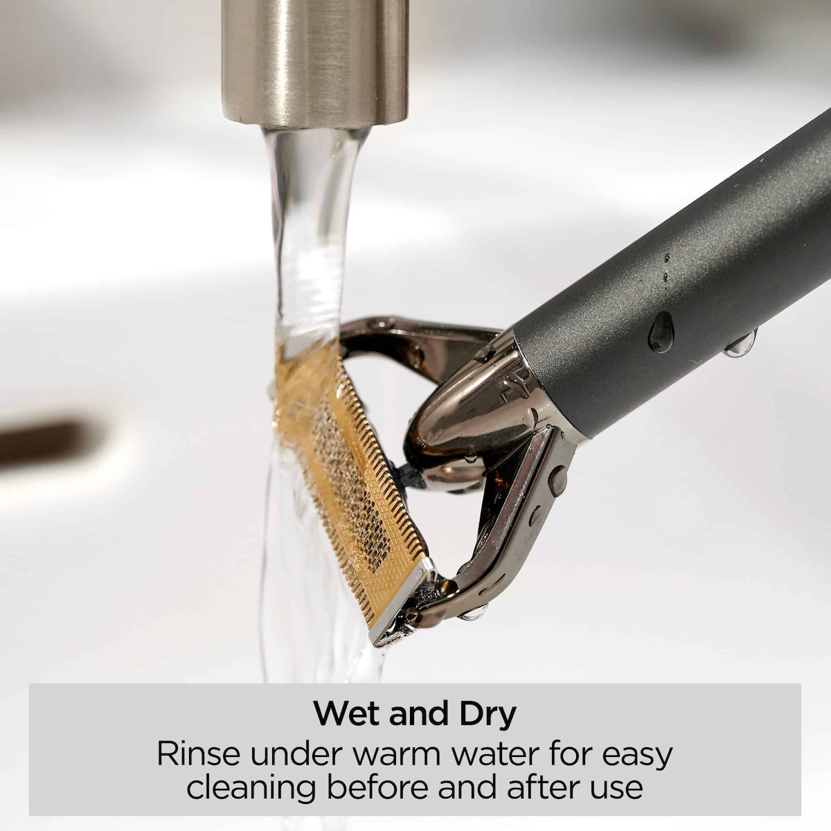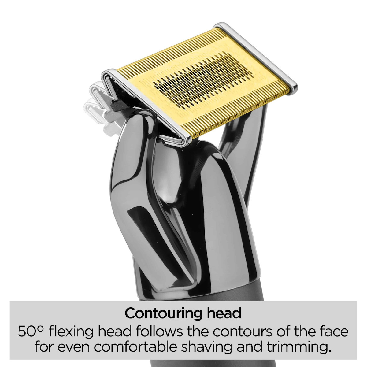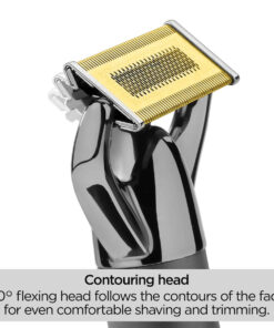 Διαθέτει μια εύκαμπτη λεπίδα τιτανίου 50º, η οποία ακολουθεί τέλεια τα περιγράμματα του προσώπου διατηρώντας σταθερή επαφή με το δέρμα.