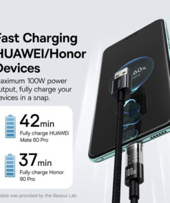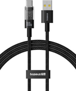 Καλώδιο δεδομένων Baseus Gem (P10373002111-01) – USB προς Type-C, Υπερ-Ταχεία Φόρτιση 100W, 2μ – Μαύρο χρώμα
