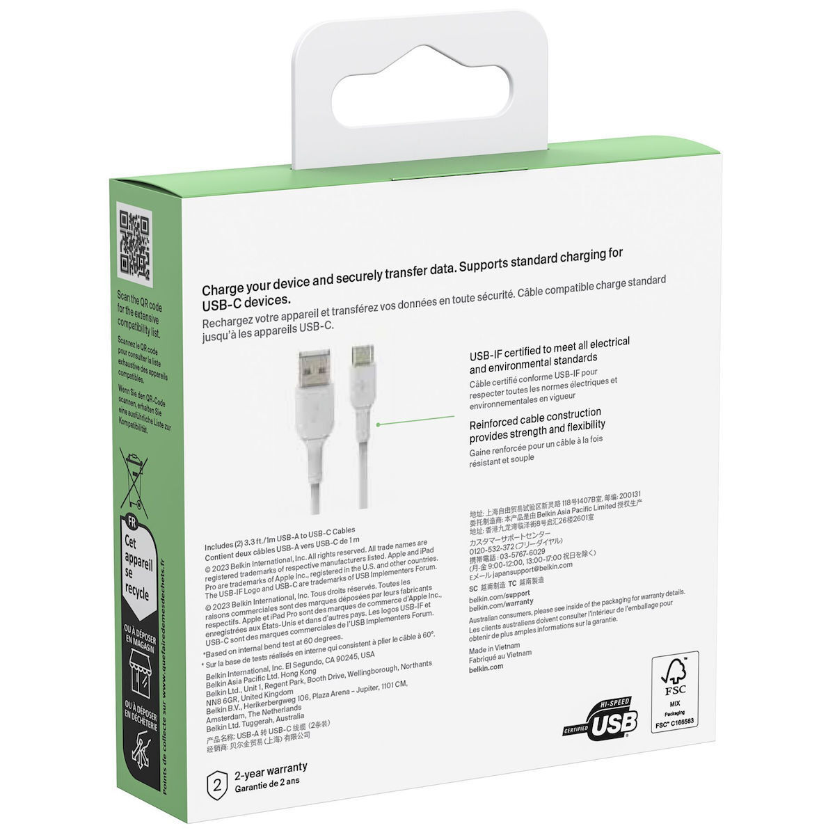 Δοκιμασμένο για αντοχή σε 8.000+ στροφές, αυτά τα καλώδια USB-C είναι κατασκευασμένα για μεγάλη διάρκεια ζωής και θα λειτουργούν με οποιαδήποτε τυπική θύρα USB-A. Διαθέτουν επίσης πιστοποίηση USB-IF για ασφαλή και απρόσκοπτη απόδοση με όλες τις συσκευές σας.