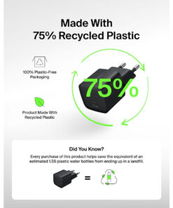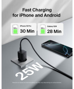 Αυτός ο φορτιστής διαθέτει μία θύρα USB-C και μπορεί να προσφέρει έως και 25W ισχύος, επιτρέποντας τη γρήγορη φόρτιση των συσκευών σου. Αν η συσκευή που φορτίζεις υποστηρίζει γρήγορη φόρτιση, μπορείς να φτάσεις το 50% φόρτιση σε μόλις 30 λεπτά.