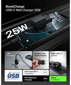Ο φορτιστής τοίχου της Belkin είναι ιδανικός για γρήγορη φόρτιση, χάρη στην προηγμένη τεχνολογία Power Delivery (PD). Είναι σχεδιασμένος για να φορτίζει αποτελεσματικά διάφορες συσκευές, συμπεριλαμβανομένων smartphones και tablets, προσφέροντας ασφαλή και αποδοτική φόρτιση χωρίς κίνδυνο υπερθέρμανσης ή υπερφόρτισης.