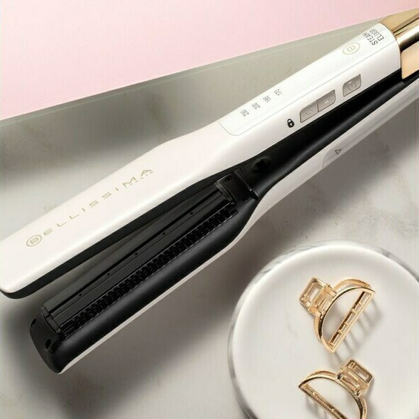 Με την πρέσα της Bellissima μπορείτε να ισιώσετε τα μαλλιά σας ή και να δημιουργήσετε αραιές μπούκλες στις άκρες.
