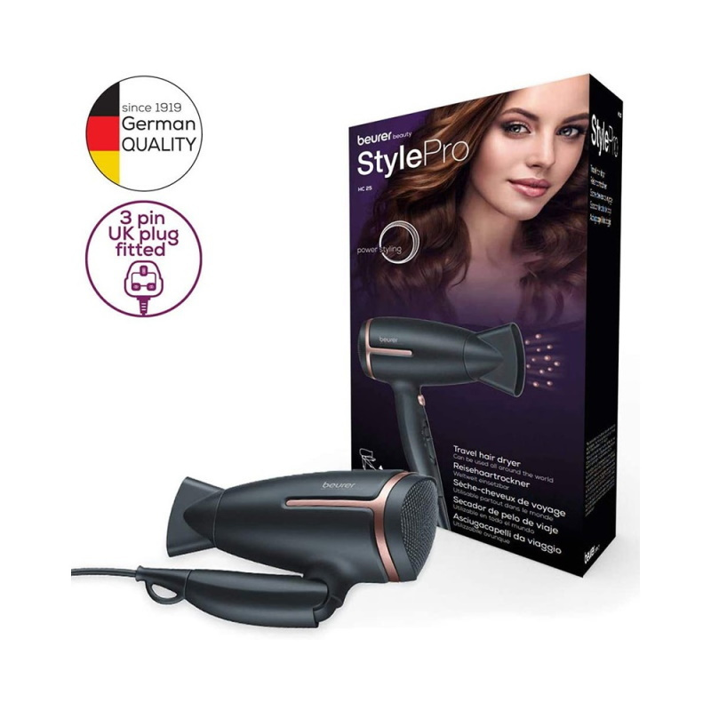 Πιστολάκι μαλλιών Beurer HC 25 Ionic, ιδανικό για τις διακοπές και τα ταξίδια.
