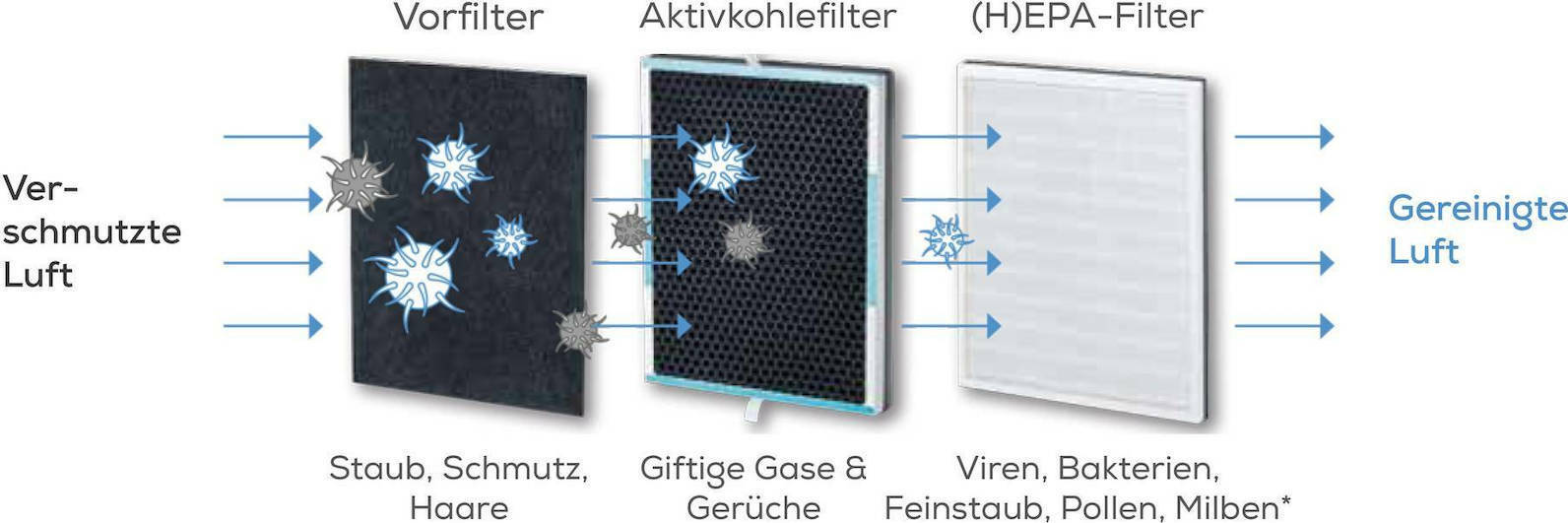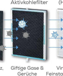 Καθαριστής αέρα της Beurer με σύστημα που φιλτράρει και καθαρίζει σε τρία στάδια (prefilter + HEPA + φίλτρο άνθρακα). Μπορεί να χρησιμοποιηθεί σε χώρους έως 54 τετραγωνικών μέτρων και διαθέτει λειτουργίες αυτόματης ενεργοποίησης και χρονοδιακόπτη.