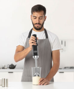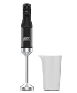 Ραβδομπλέντερ, της εταιρείας Black & Decker, με ισχύ 1500 Watt. Με το ραβδομπλέντερ θα μπορέσετε να πολτοποιήσετε τρόφιμα για παιδικές τροφές, να ομογενοποιήσετε σάλτσες, να φτιάξετε σπιτική μαγιονέζα, να δημιουργήσετε smoothies από οποιοδήποτε φρούτο επιθυμείτε ή ακόμα και να ετοιμάσετε σούπες. Είναι πολύ πρακτικό, εύχρηστο και καταλαμβάνει λιγότερο χώρο, σε σχέση με ένα επιτραπέζιο μπλέντερ. Μεγάλο του πλεονέκτημα αποτελεί το γεγονός ότι μπορείτε να επεξεργάζεστε τα υλικά σας μέσα σε οποιοδήποτε σκεύος, χωρίς να χρειάζεται να τα μεταφέρετε και να συσσωρεύονται στην κουζίνα σας διαρκώς άπλυτα σκεύη. Κατά τη διάρκεια του μαγειρέματος καλό θα είναι να έχετε πάντα την κεφαλή βυθισμένη μέσα στα τρόφιμα που επεξεργάζεστε, ώστε να αποφεύγονται ανεπιθύμητα πιτσιλίσματα αλλά και τυχόν εγκαύματα, στην περίπτωση που το τρόφιμο που επεξεργάζεστε είναι ακόμα καυτό.