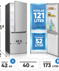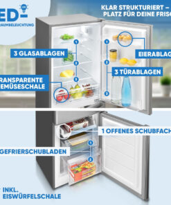 Ο ψυγειοκαταψύκτης Bomann προσφέρει συνολική χωρητικότητα 173 λίτρων, ιδανικός για τις ανάγκες ενός ή δύο ατόμων. Διαθέτει στατική ψύξη, η οποία εξασφαλίζει ομοιόμορφη κατανομή της θερμοκρασίας και υψηλά επίπεδα υγρασίας, διατηρώντας έτσι τα νωπά τρόφιμα φρέσκα. Ωστόσο, απαιτεί τακτική απόψυξη για να μην συγκεντρώνεται πάγος, με προτεινόμενο μέγιστο πάχος 1 εκατοστό για καλύτερη λειτουργία.