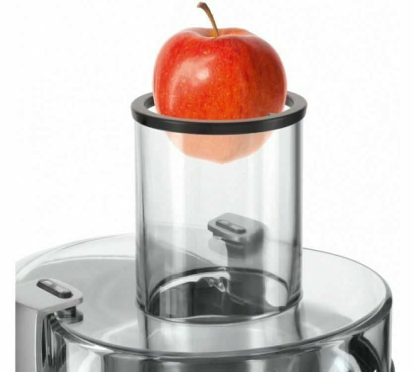 Η προετοιμασία φρούτων και λαχανικών για το χυμό είναι χρονοβόρα. Τώρα μπορείτε να έχετε χυμό από ολόκληρα κομμάτια φρούτων γρήγορα και εύκολα. Χάρη στον σωλήνα γεμίσματος XL (73mm) μπορείτε να ρίξετε μεγάλα κομμάτια φρούτων και λαχανικών απευθείας στον αποχυμωτή, χωρίς καμία προετοιμασία.
