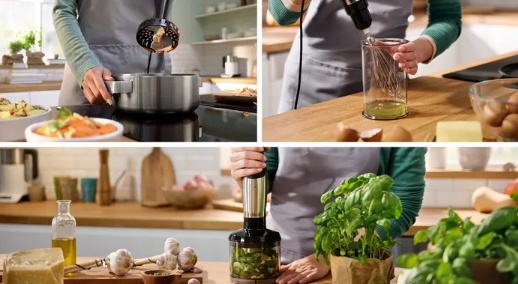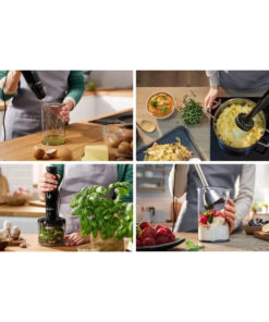 Τρία αξεσουάρ για μεταβλητές εργασίες. Ψιλοκόψτε τα μυρωδικά, τους ξηρούς καρπούς, τα κρεμμύδια και το τυρί με τον κόφτη. Χτυπήστε τα ασπράδια, τις κρέμες ή ανακατέψτε ελαφριά μείγματα κέικ με το σύρμα. Με το αξεσουάρ για πουρέ proPuree μπορείτε να φτιάξετε πουρέ μαγειρεμένης πατάτας ή λαχανικών.