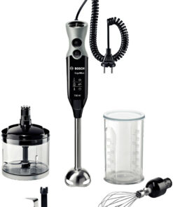 Σας αρέσουν οι πολλές επιλογές; Χάρη στα πολυλειτουργικά αξεσουάρ μπορείτε να εκτελέσετε σχεδόν οποιαδήποτε εργασία. Πρώτον υπάρχει ο κόπτης, π.χ. για κοπή βοτάνων, ξηρών καρπών και τυριών. Στη συνέχεια, υπάρχει η πρόσθετη λεπίδα θρυμματισμού πάγου για τη σύνθλιψη πάγου, καθώς και το σύρμα για το χτύπημα ασπραδιών αυγού και κρέμας σαντιγί.