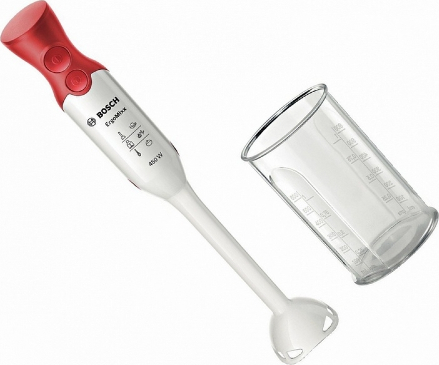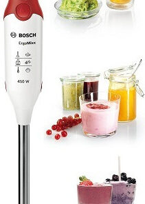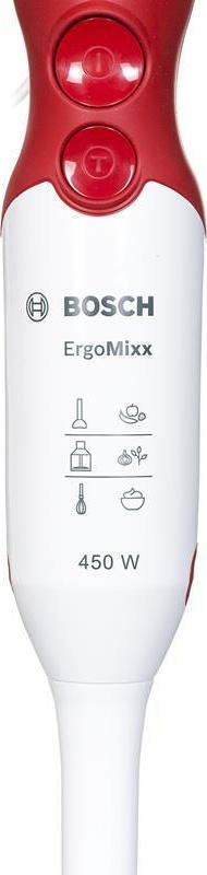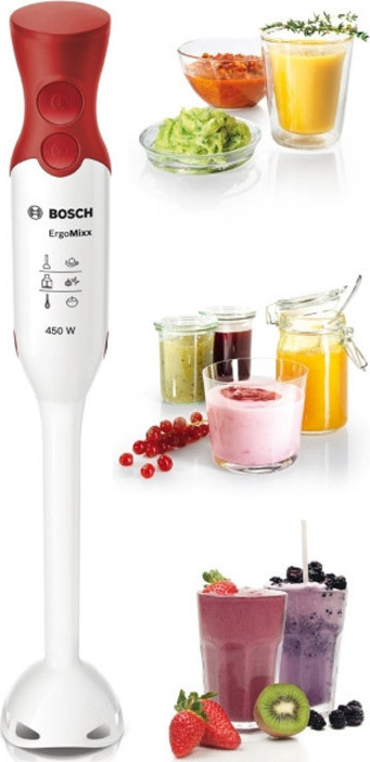Ράβδος μπλέντερ MSM64010 ισχύος 450 Watt με μοναδικό σύστημα τεσσάρων λεπίδων QuattroBlade που καθιστά εύκολη την πολτοποίηση, την ανάμειξη και το ψιλοκόψιμο.