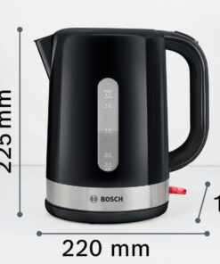 Ο βραστήρας της Bosch συνδυάζει ταχύτητα και πρακτικότητα με ισχύ 2200 Watt, επιτρέποντάς σου να θερμαίνεις το νερό σε ελάχιστο χρόνο. Με χωρητικότητα 1.7 λίτρων, είναι ιδανικός για να ετοιμάσεις έως και 8 φλιτζάνια ζεστού νερού, δυνατός σύμμαχος στην κουζίνα σου για κάθε ζεστό ρόφημα ή μαγειρική προετοιμασία. Η κανάτα του είναι κατασκευασμένη από ανοξείδωτο ατσάλι, εξασφαλίζοντας αντοχή και ευκολία στον καθαρισμό. Είναι καλό να θυμάσαι να προχωράς ανά τακτά χρονικά διαστήματα σε αφαλάτωση για τη διατήρηση της διάρκειας ζωής της συσκευής.