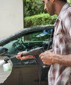 Γρήγορο σαπούνισμα με το ακροφύσιο απορρυπαντικού υψηλής πίεσης 450 ml. Η σύνδεση κάννης καθιστά απλό τον καθαρισμό των αυτοκινήτων και των επίπλων κήπου.