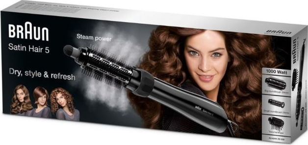 Ηλεκτρική βούρτσα με έξτρα κεφαλές για εύκολο και γρήγορο χτένισμα σε μαύρο χρώμα.