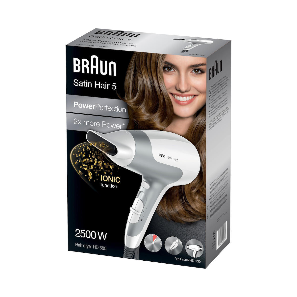 Σεσουάρ Μαλλιών Braun Satin Hair 5 HD 580 Power Perfection Solo, πολύ ισχυρό, για μείωση του χρόνου στεγνώματος.