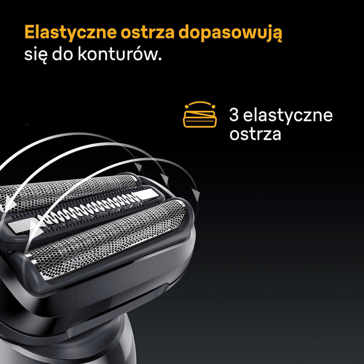 - 3 Flex Blades: Ανεξάρτητα κινούμενες λεπίδες που ακολουθούν τις καμπύλες του προσώπου για άνετο και ακριβές ξύρισμα.