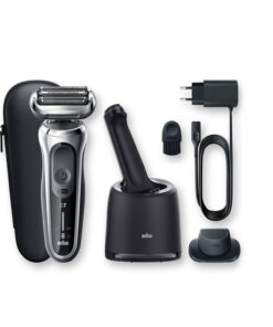 Ξυριστική μηχανή προσώπου της εταιρείας Braun με μια κεφαλή ξυρίσματος. Είναι κατάλληλη για βρεγμένο και στεγνό δέρμα. Μπορεί να πλυθεί με νερό για εύκολο καθαρισμό. Λειτουργεί με επαναφορτιζόμενη μπαταρία και διαθέτει τεχνολογία γρήγορης φόρτισης.