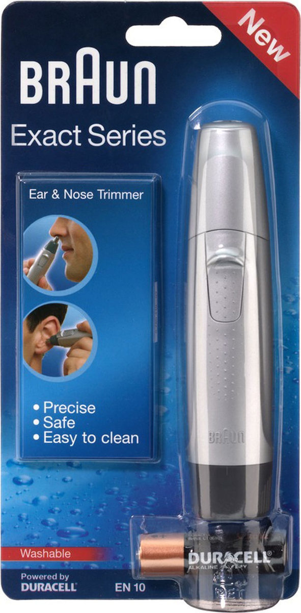 Kουρευτική μηχανή για αυτιά και μύτη της σειράς Exact της Braun. Προσφέρει ένα ακριβές,ασφαλές και πρακτικό μέσο για την αφαίρεση των τριχών με εργονομικό και προηγμένο σχεδιασμό. Το υψηλής απόδοσης σύστημα με την κυκλική λεπίδα εξασφαλίζει ακρίβεια στην αφαίρεση των τριχών και μπορεί να ξεπλυθεί κάτω από τρεχούμενο νερό.